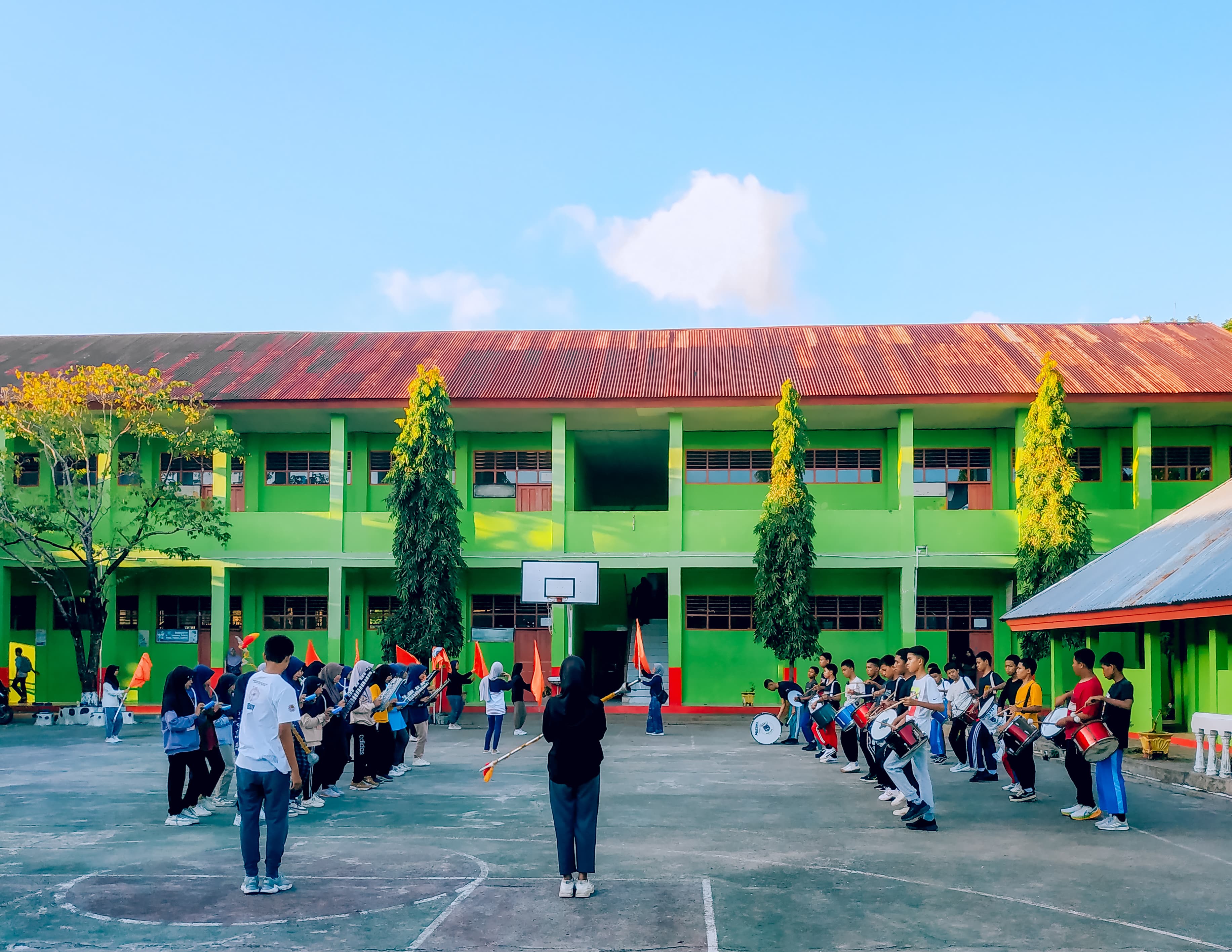Drumband di SMPN 1 adalah salah satu kegiatan ekstrakurikuler yang sangat populer dan diminati banyak siswa. Kegiatan ini melibatkan gabungan musik, gerak, dan baris-berbaris yang membutuhkan kekompakan, disiplin, dan stamina. Drumband umumnya berfokus pada pengembangan musikalitas dasar, keterampilan baris-berbaris, serta pembentukan karakter siswa. Tujuan dari mengikuti Drumband, yaitu sebagai pengembangan musikalitas di mana siswa belajar membaca not balok sederhana, memahami ritme, tempo, dinamika, dan memainkan alat musik